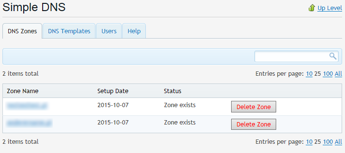 Achtung: Beim Klick auf "Delete Zone" wird nicht nachgefragt und die DNS Zone wird sofort gelöscht!