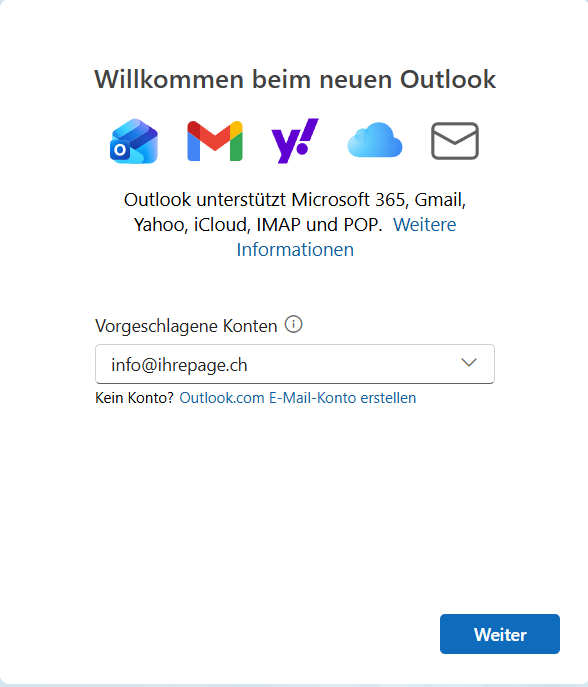 Hinweis zum Datenschutz: Das neue Outlook wird E-Mail-Konten je nach Konfiguration über Microsoft-Cloud-Dienste synchronisieren. Dadurch können Verbindungsaufbau und Datenverarbeitung teilweise über Systeme von Microsoft erfolgen – nicht ausschliesslich direkt zwischen Ihrem Gerät und unseren in der Schweiz gehosteten Mailservern.