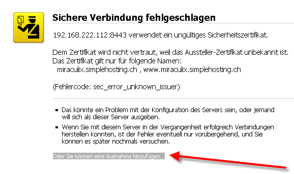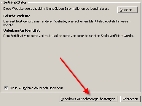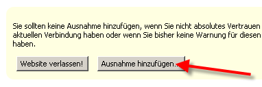 4. Danach noch den Button "Sicherheits-Ausnahmeregel bestätigen"