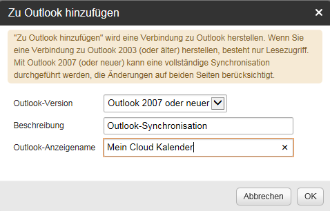5. Es wird je nach Version von Outlook nochmals eine Meldung kommen ob sie dies nun verbinden möchten. Bestätigen sie dies mit Ja.