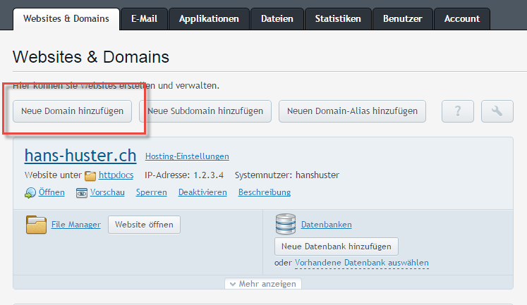 Sie möchten ein weiteres eigenständiges Hosting für eine weitere Domain eröffnen, dann gehen sie wie folgt vor.