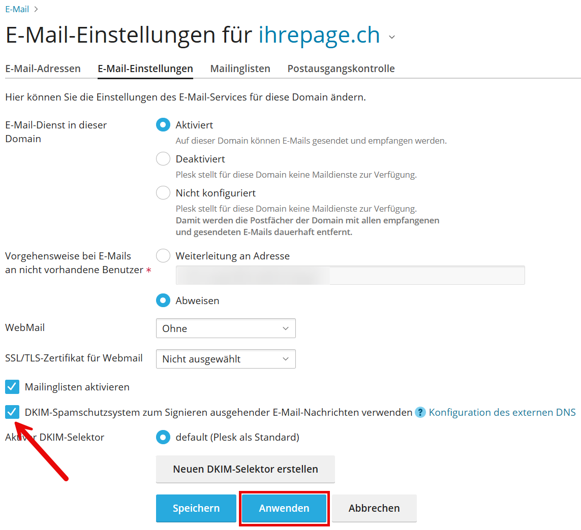 Das Signieren durch DKIM wird für jede Domain einzeln aktiviert.