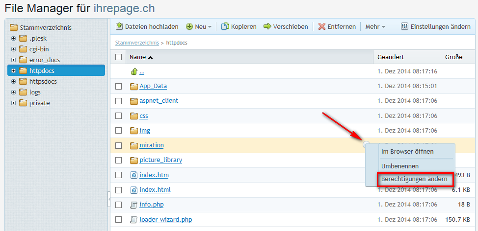 Sie möchten gerne gewisse Berechtigungen auf Ordnern oder Dateien innerhalb ihres Hostings anpassen, dann gehen sie wie folgt vor.