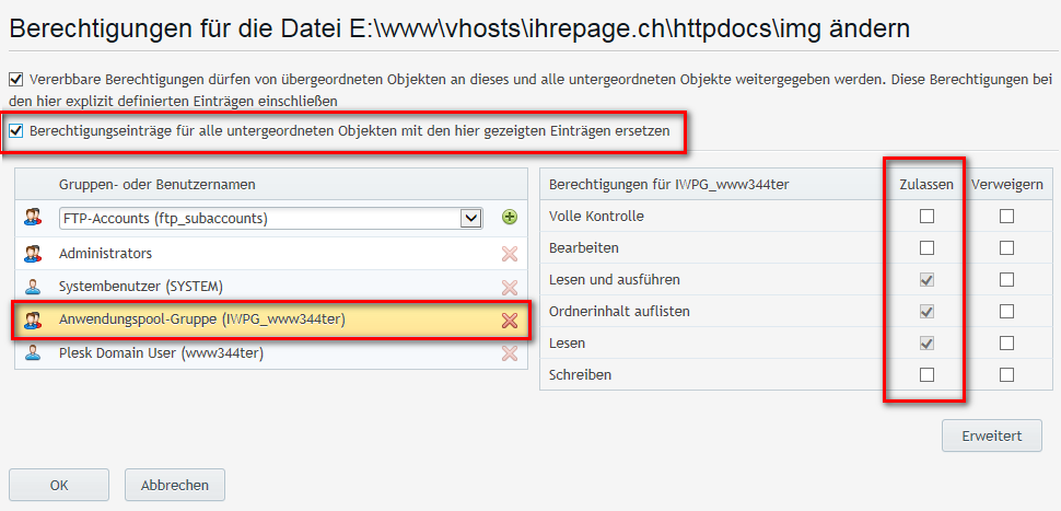 b. Der User der benutzt wird um die Seite aufzurufen ist der IWPG.... User und dieser darf im Normallfall schon lesen und ausführen.